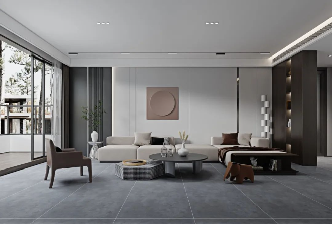 750x1500mm的大規格,三個不同釉面(保護精雕釉、保護釉、超細干粒)打造不同質感。在溫潤的肌理之上,傳遞出干凈有格調的極簡美學質感。