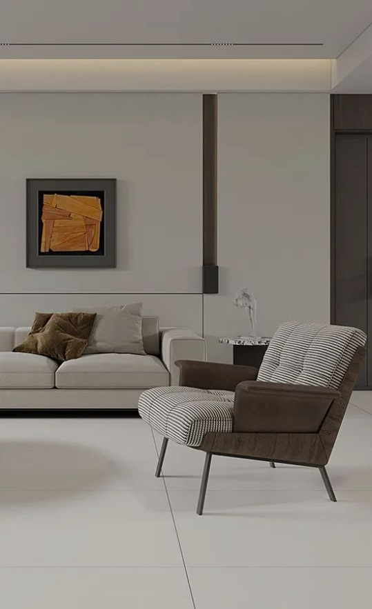 750X1500mm黃金規(guī)格,結(jié)合柔和暖灰延伸空間的視覺感同時,將客廳設計與美好自然組合,復刻原石經(jīng)歷歲月后的真實肌理,為空間營造輕松治愈的舒適氛圍。