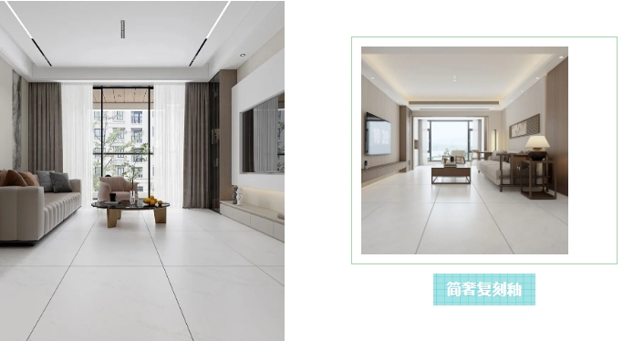 無(wú)論是客廳背景墻的一抹大氣,衛(wèi)浴空間中的點(diǎn)睛之筆,還是通鋪地面的流暢延伸,簡(jiǎn)奢復(fù)刻釉都能輕松駕馭。它讓藝術(shù)成為生活的